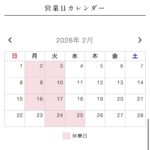 いつも,当店をご利用いただきまして ありがとうございます。 赤枠が定休日となっております。 2/23(月)は祝日の為営業いたします。 2/25(水)は振替休日とさせていただきます。 お客様には、ご不…
