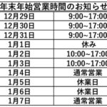 いつも当店をご利用いただきまして、ありがとうございます。 12/28日〜1/2日の期間 オンライン販売受付は,お休みさせていただきます。 尚,1/3日より販売受付開始させていただきます。 お客様には、…