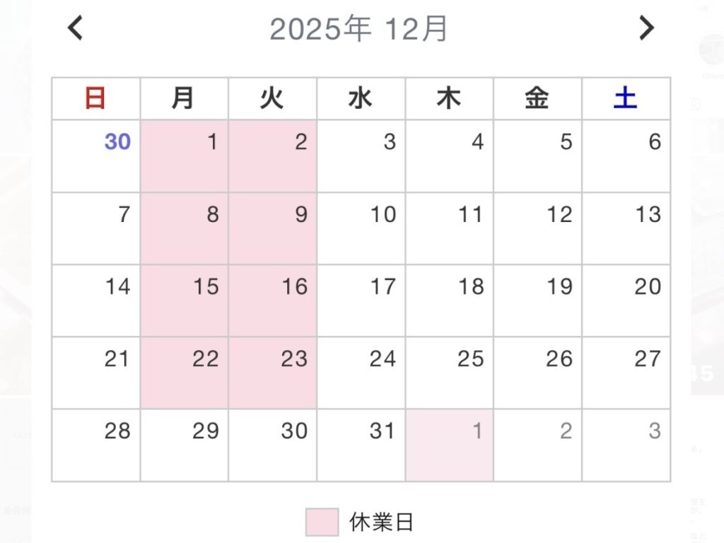 12月定休日のお知らせ
