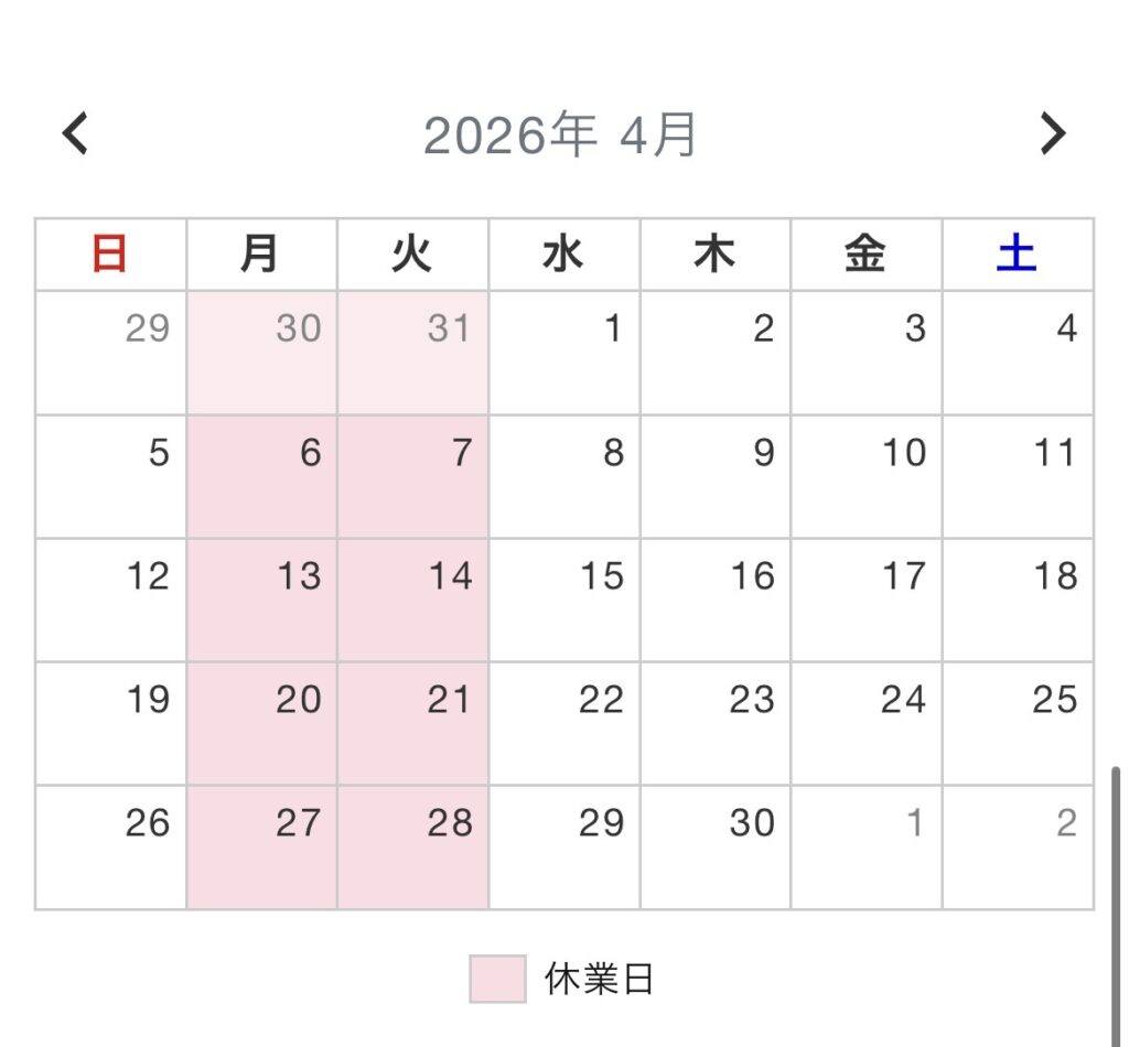 4月定休日のお知らせ