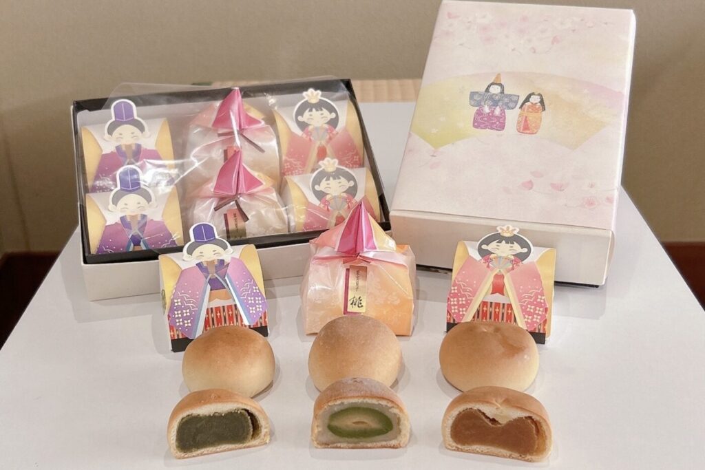 【おびな】 生地・・ミルク風味焼き物生地 餡・・・抹茶餡(京都産 宇治抹茶 使用)